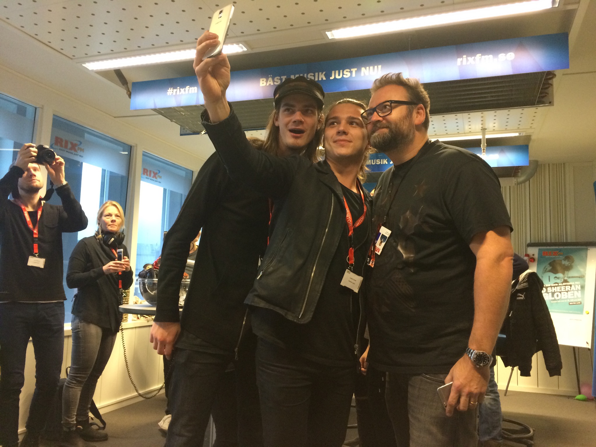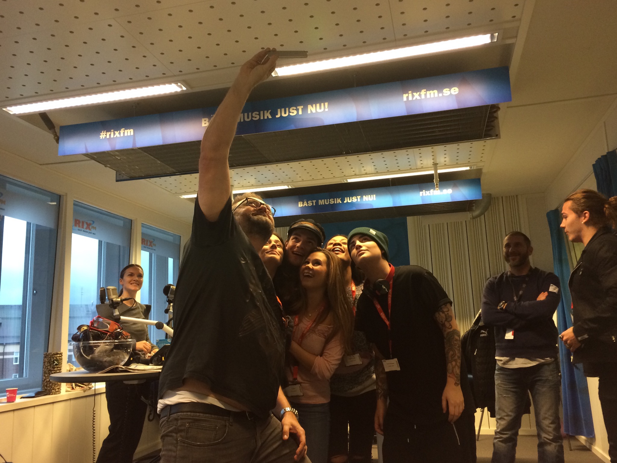 Många selfies, skratt och glad Katarina från Returpack med idolerna, Adam, Britta och Marco från RIXMorronzoo.