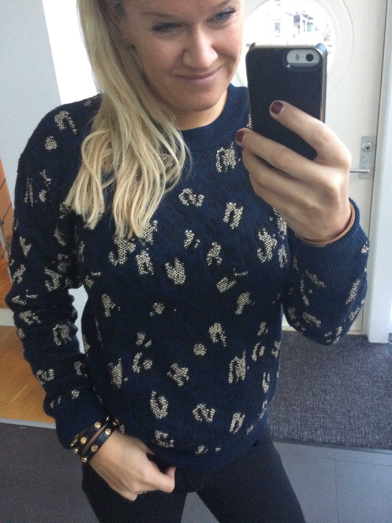 Dagens blåa 4 dec 2014 av Therése Modig Idag blir det lite casual men ändå lite stylish, tycker jag. Det blåa med det guldiga. Ny tröjja från Other Stories. Byxor från Guess.