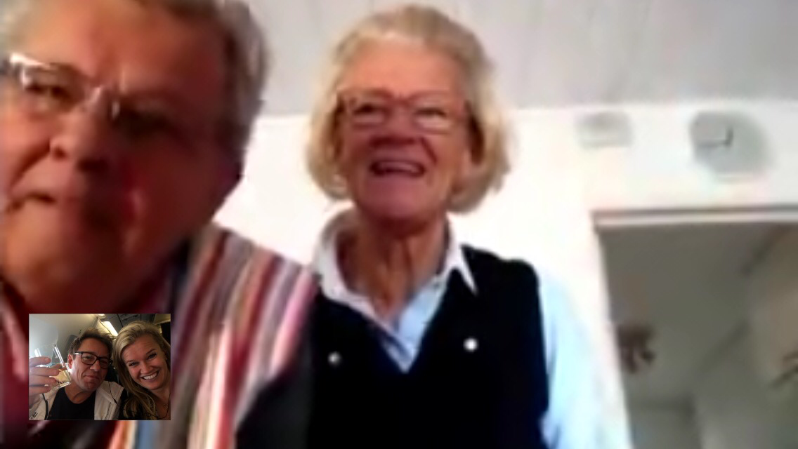 Precis ringt upp mamma och pappa på FaceTime, från luften! Även om hackade lite men vi kunde säga hej!
