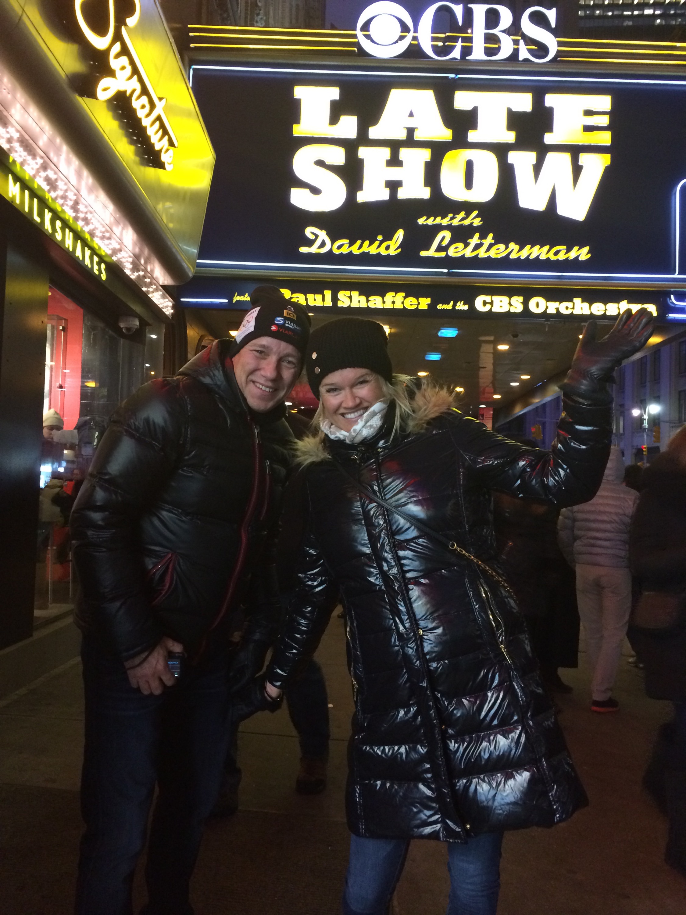 Inga foton fick tas där inne men va kul det var! Showen som visas på CBS ikväll. (Tisdag) Var som live rakt igenom, inga omtagningar utan jäkligt skarpt och va sjuk känsla att sitta där,med Letterman, och Steve Carell som var lyckoshot just den här kvällen, en favorit skådespelare till både mig och Christer då vi nog sett alla hans filmer. Kul också för det här är Lettermans sista säsong sen lägger han ner. Får väl slå på CBS ikväll när vi kommit till Vail. Om vi lyckas hålla oss vakna. Ytterligare några timmars tidsomställning när vi kommer dit.