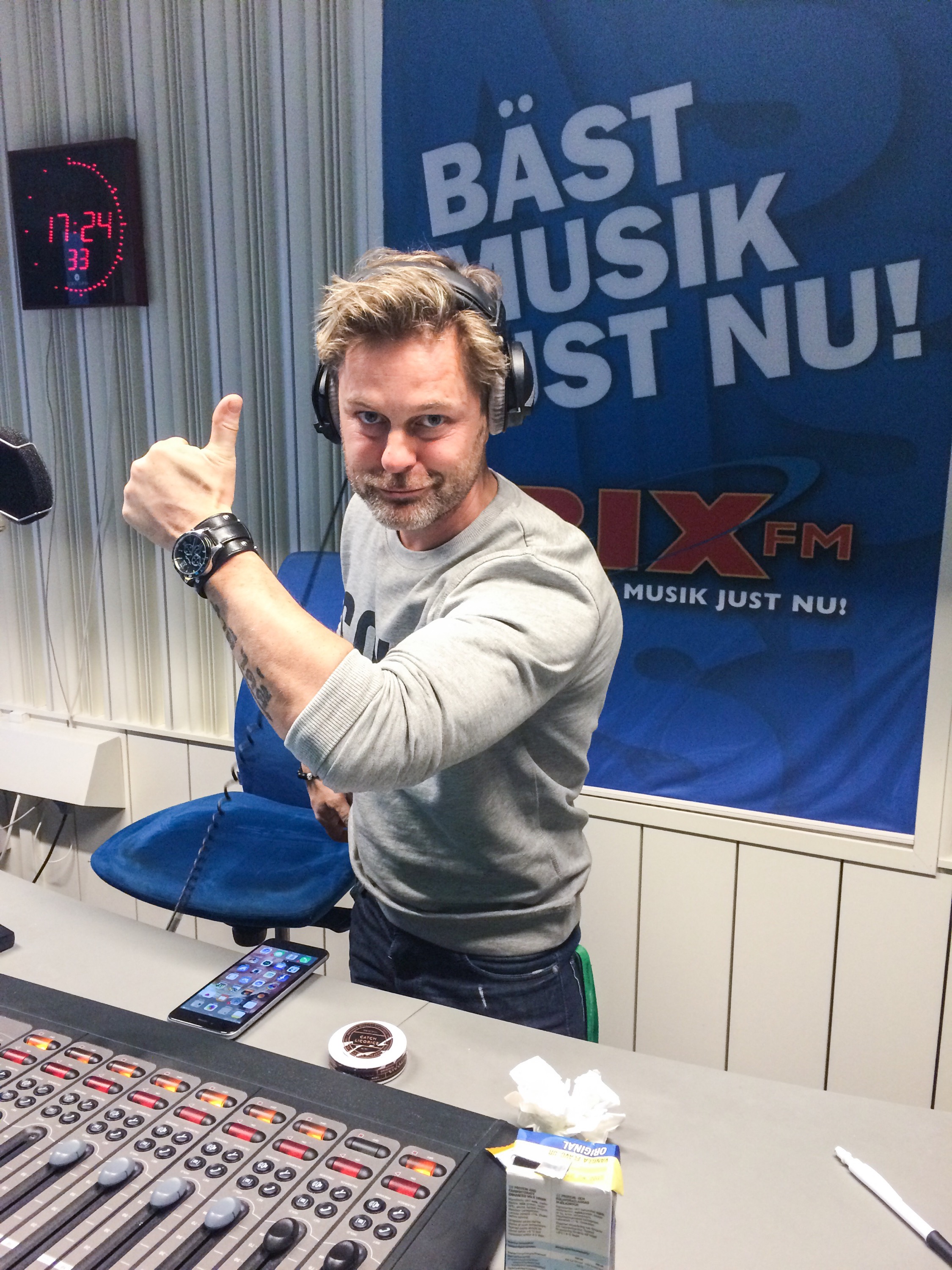 Det finaste som nästan ger mig en tår i ögat när jag kliver in på MTG på Ringvägen i deras jätte lika nyrenoverade reception som känns så välkomnande är den gamla radio som nu står här när du kommer, som Christer själv placerat som den sanna ambassadör för radion han är, och själv tagit dit, sin mormors gamla radio! Bättre plats kunde Christer inte hitta sa han och jag håller med. Så vacker. Med guldskivor ovan. Stolt över min man och det tror jag, vet jag, Mormor Doris är över Christer med. Radion lever!