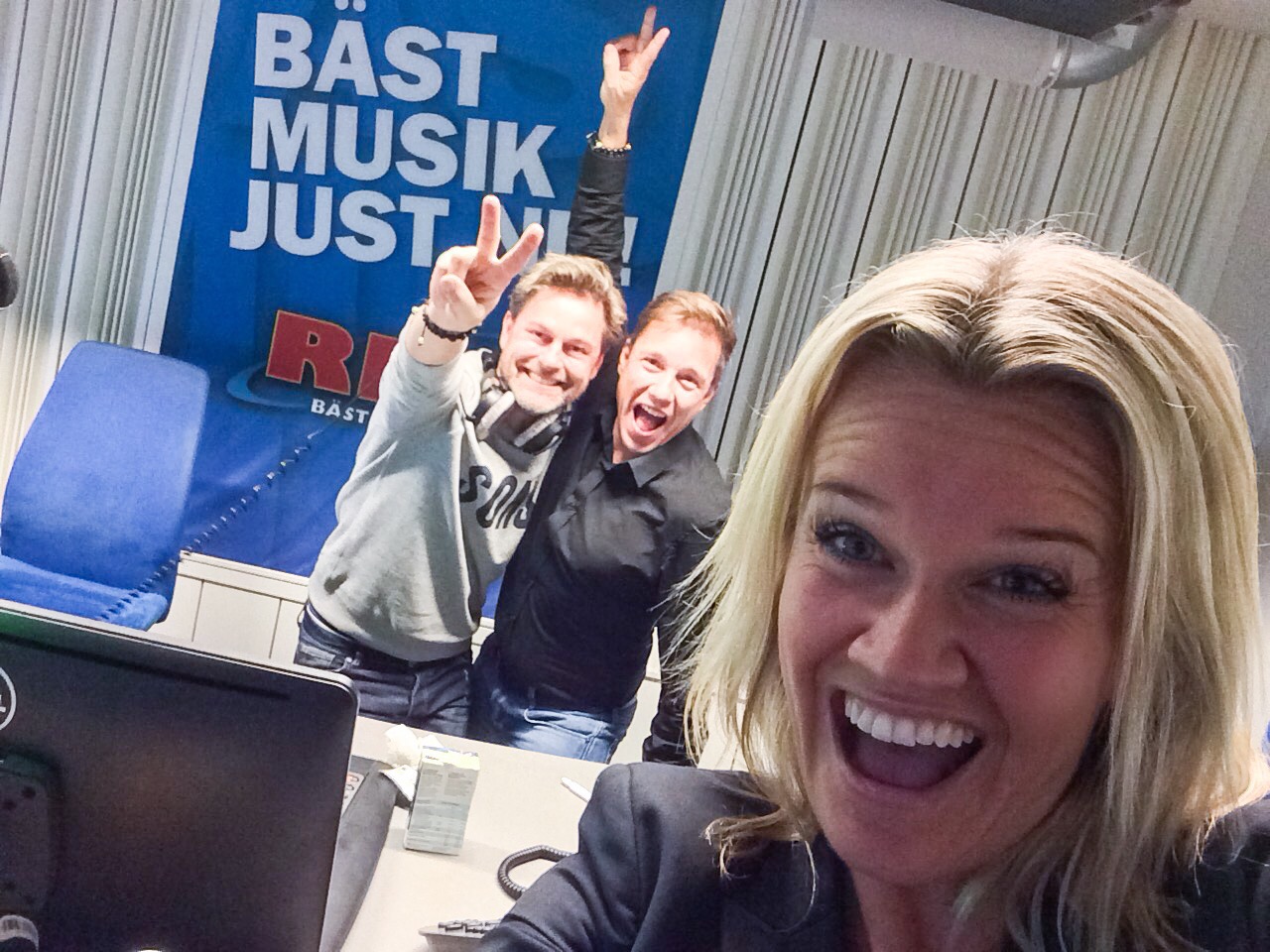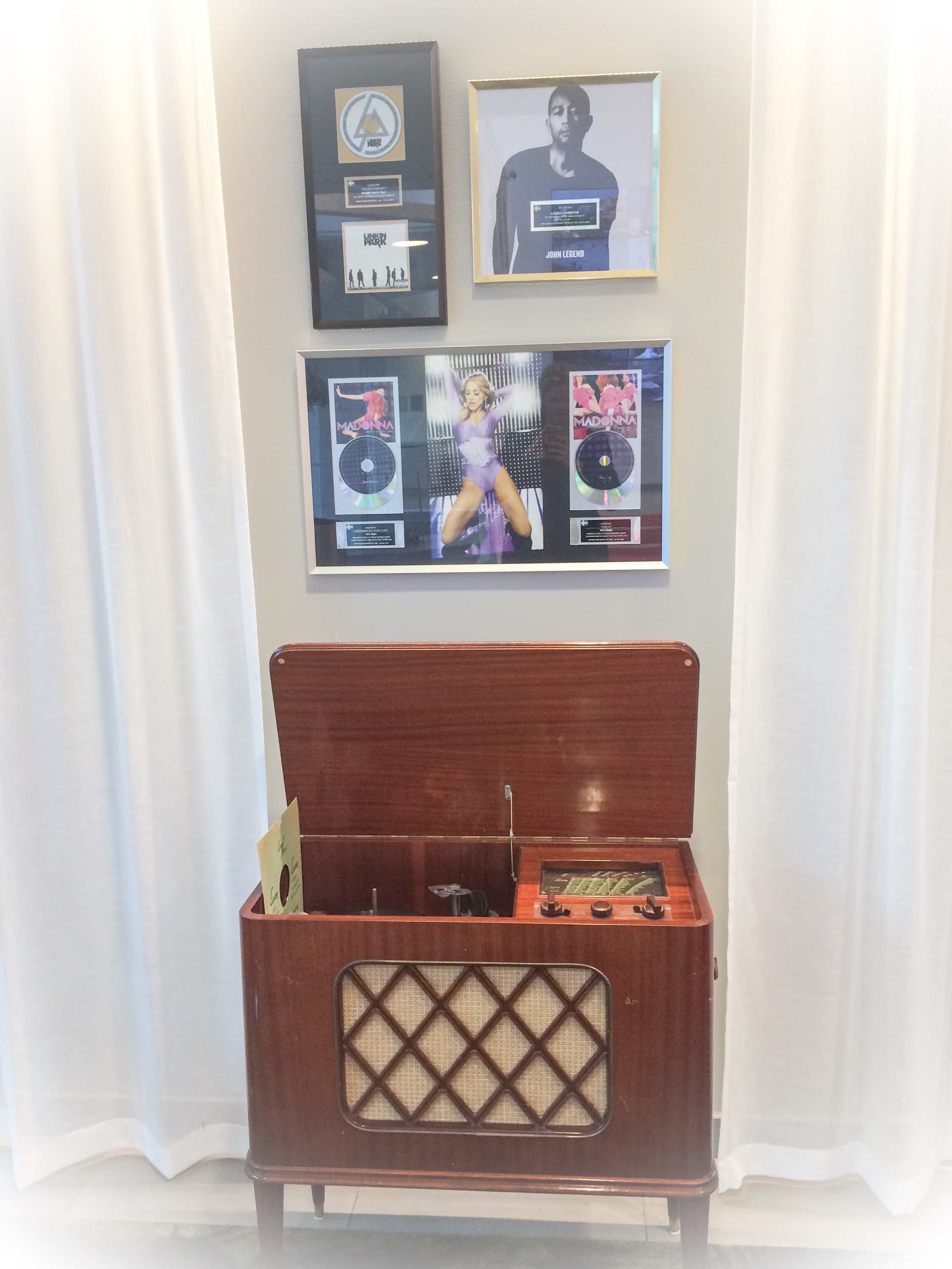 Det finaste som nästan ger mig en tår i ögat när jag kliver in på MTG på Ringvägen i deras jätte lika nyrenoverade reception som känns så välkomnande är den gamla radio som nu står här när du kommer, som Christer själv placerat som den sanna ambassadör för radion han är, och själv tagit dit, sin mormors gamla radio! Bättre plats kunde Christer inte hitta sa han och jag håller med. Så vacker. Med guldskivor ovan. Stolt över min man och det tror jag, vet jag, Mormor Doris är över Christer med. Radion lever!