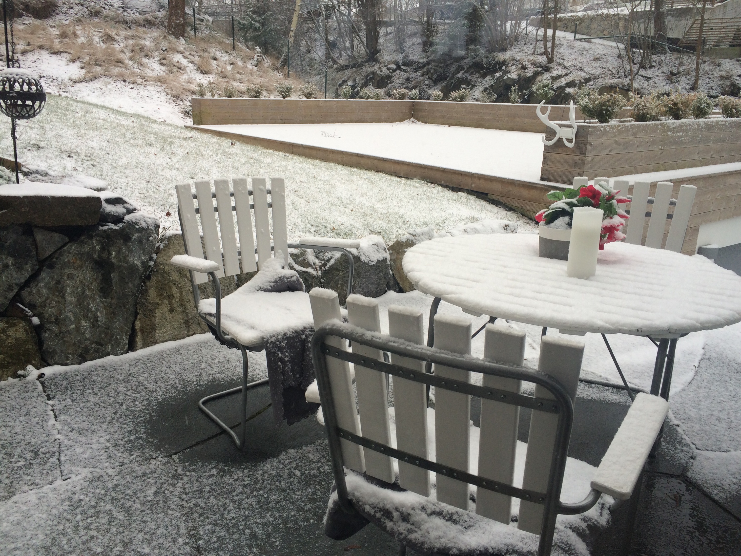 ååå! Den kommer nog alla skriva idag på sin Facebook. Kände det när jag skrev det! Hahaha! Jaja, kunde varit ett aprilskämt men det är ju inte ovanligt att det snöar i april så vet egentligen inte varför vi blir förvånade. Men jag själv så kanske jag skulle tagit in dom där filtarna på köksterassen som fortfarande ligger kvar, UNDER snön!