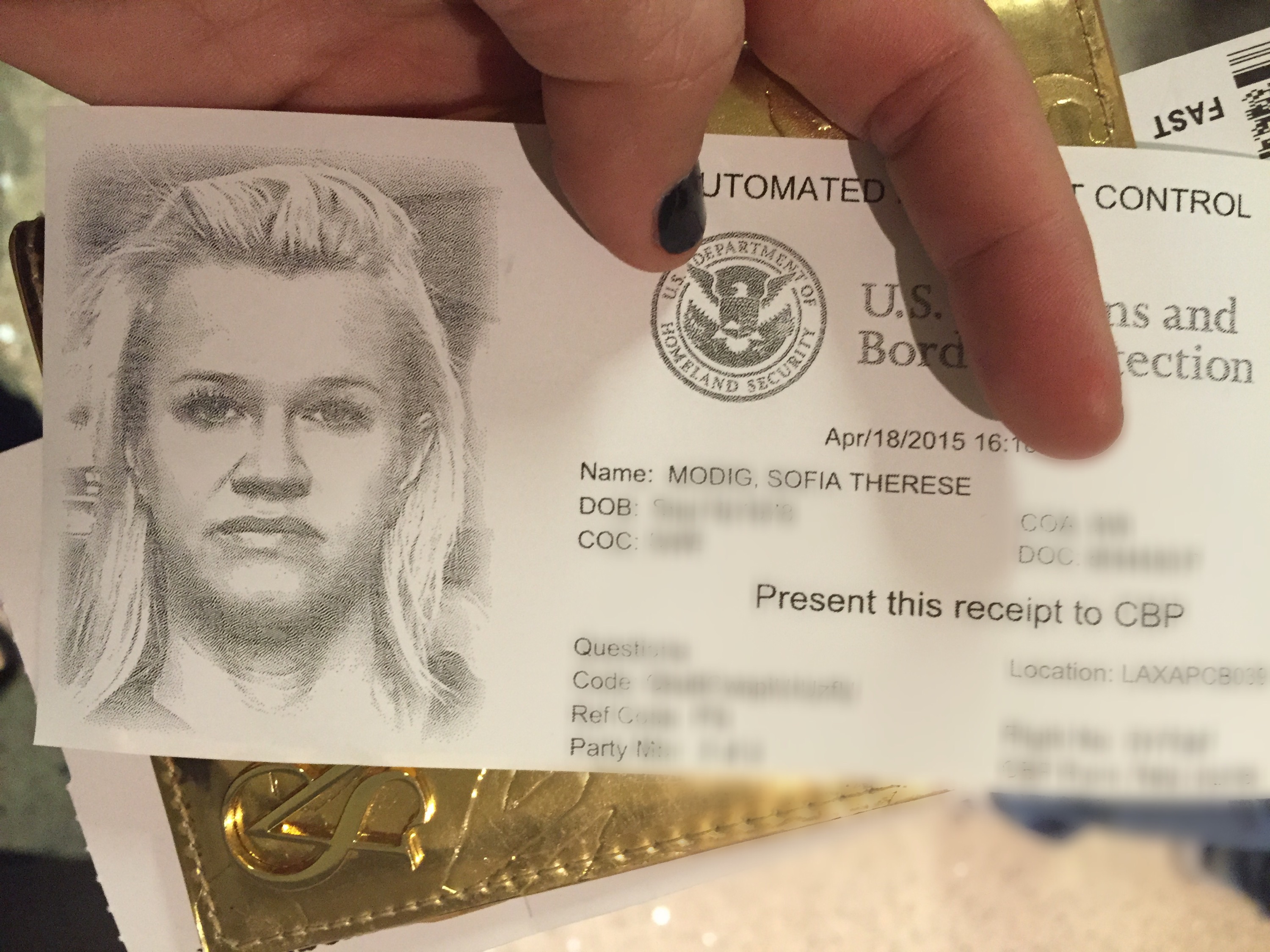 Äh jag måste bjuda på den här! Jag har aldrig skrattat så mycket i tullen tidigare som jag gjorde idag! Nytt nu på LAX är att du ”förregistrerar” dig vid ankomst, innan customs. Scannar passet själv , svarar på frågor, tar fingeravtryck och fotar dig! Allt gick så snabbt och plötsligt klick! Men va fa**! Tog den nu?! Men..japp. Hängde ju inte med och ut kommer en papperskopia du ska ha i ditt pass när du stiger fram. That moment. När jag såg min bild!! Jag började skratta så jag grät! Och kunde inte sluta!! Jag vek mig av skratt så mina tårar bara rann! Min.bild!! Hahahaha!! Men!! Den mest osmickrande bilden, där ingen Photoshop i världen kunnat rädda, utbrister mellan tårarna – ”Men jag liknar ju en förrymd fånge!! Jag liknar ju Annika Östberg!” Svenskan som satt i Californisk fängelse i 28 år! Hur ser jag ut!! Alltså jag kunde inte sluta skratta! Och sen kommer Christers bild, han hann inte heller och Christers lilla ”oj” som hördes bredvid mig – ”Men.. nu tog den på mig med!” Och blev inte ett dugg bättre! Kan man få ta om?! Hahaha! Aldrig haft så kul i customs tidigare. Bara det att ingen annan hade kul, dom tittade på mig lite konstigt. Jag slutade skratta snabbt när jag mötte deras blick..behave Mrs Brave, behave!
