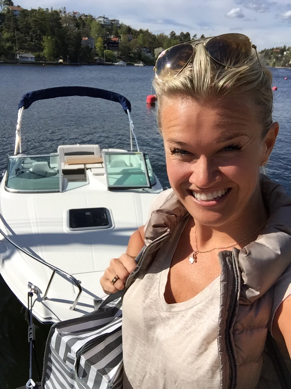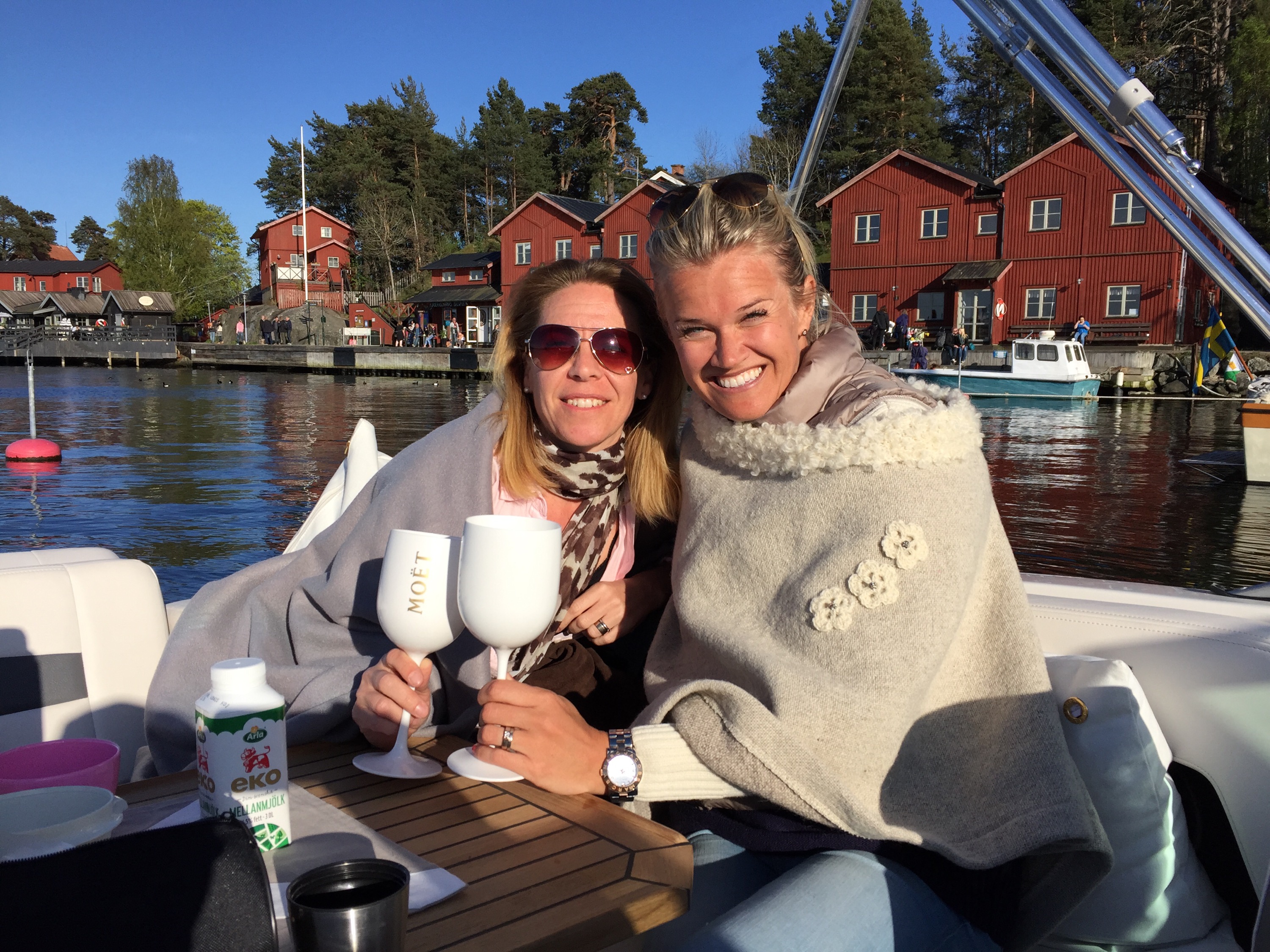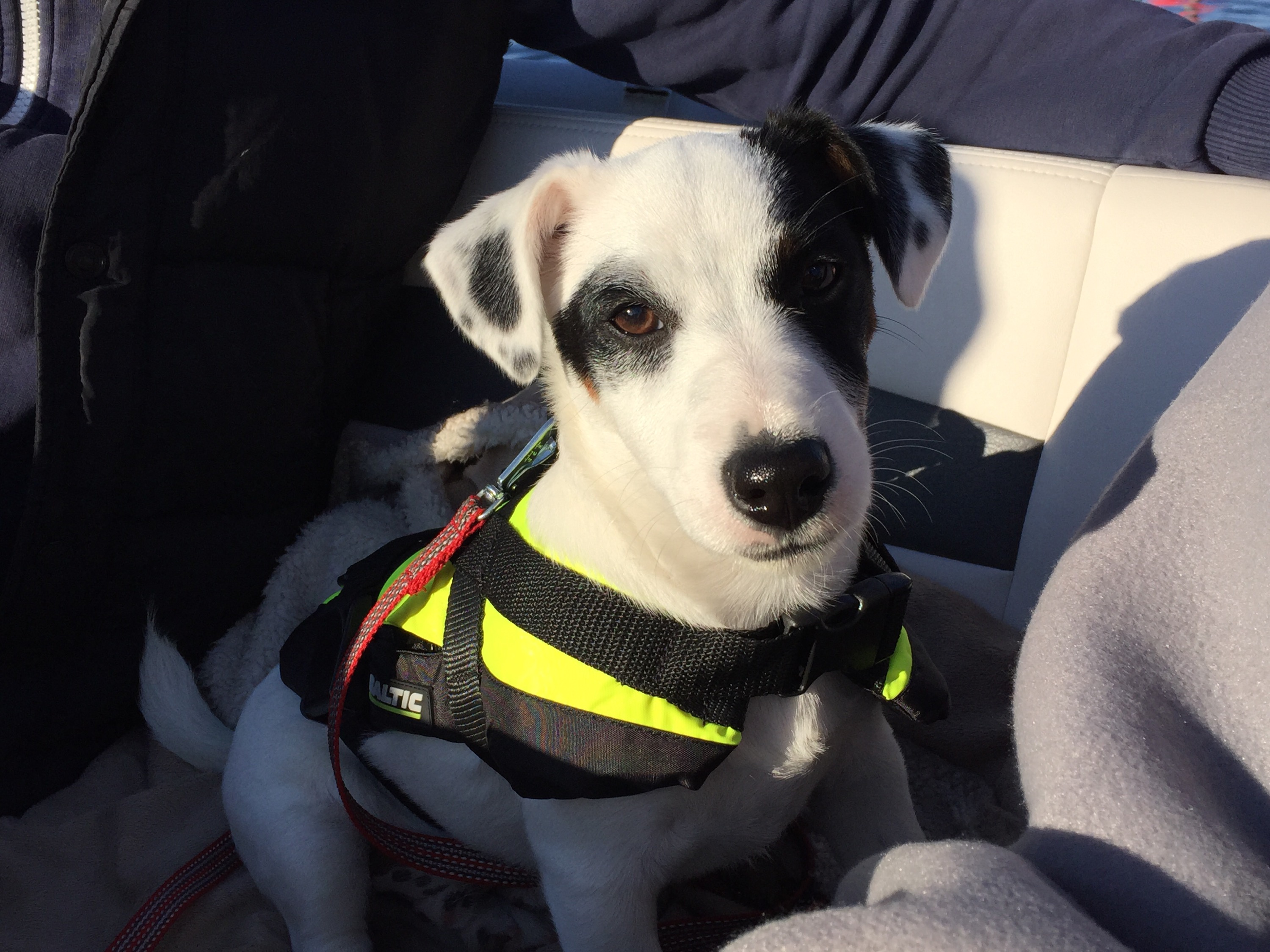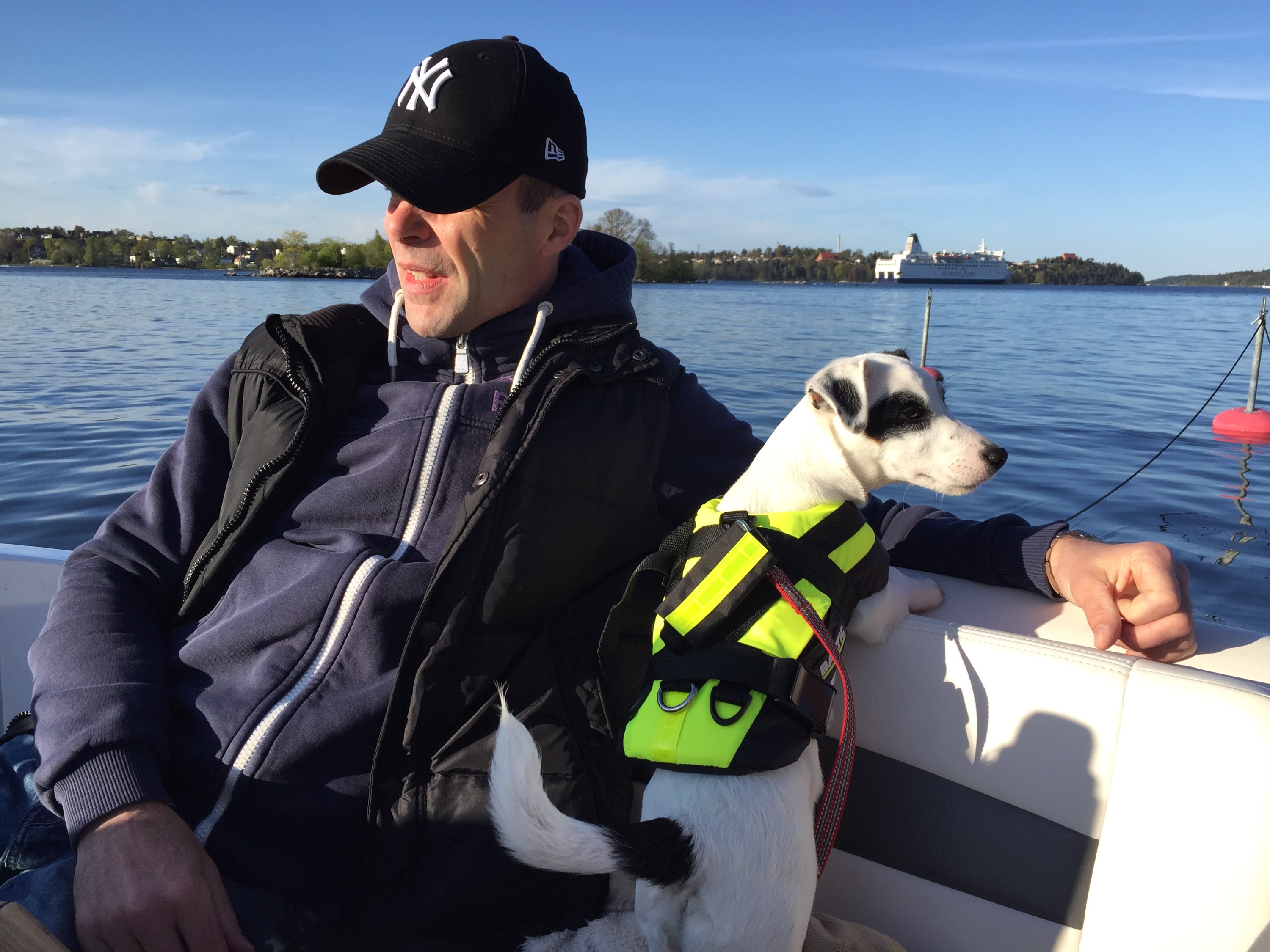 Vi åkte under lördagen och hämtade våra vänner J&J, Jessica och Johan och deras fina lilla Jack Russel Ludwig! Perfekt! Vi måste ju se hur båten är med hund! Kung Ludwig världens coolaste, hade fått en egen flytväst och trots bara halvåret så verkade det som han inte gjort något annat än åkt båt! Han älskade det! Lite sammanbiten först men sen var det för mycket att titta på med fåglar, vattnet som guppade och alla dofter. Han somnade gott medans vi åt middag då vi la till vid Fjäderholmarna och åt på båten med mat jag fixat hemma. Vilken underbar lördag!