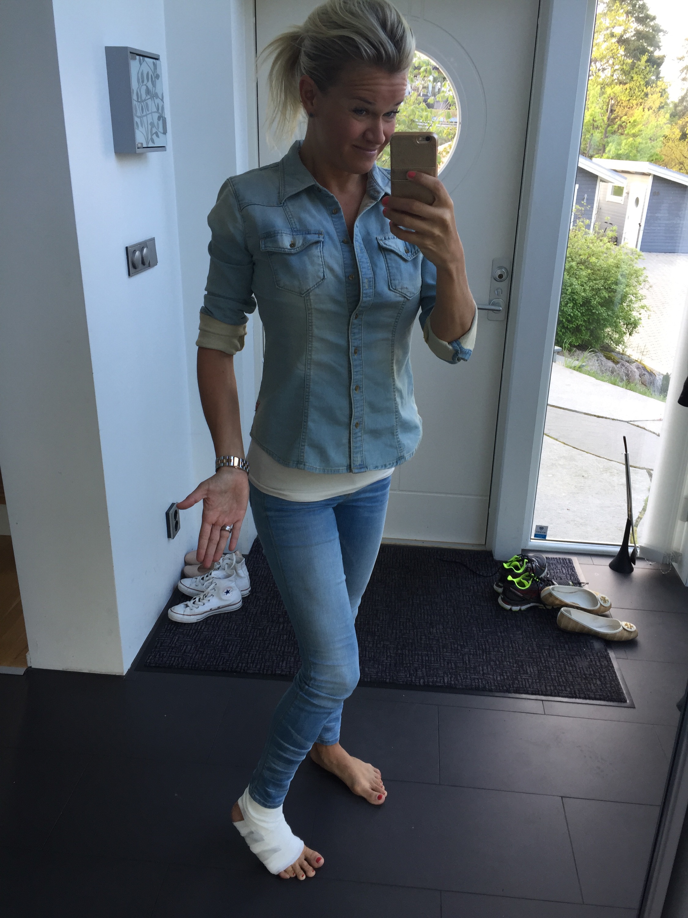 Dagens vita 19 maj 2015 av Therése Modig Skjorta och jeans båda från Guess// Fotlinda Nacka Närakut// Skor? Vet i tusan vilka som passar och får i den där foten! Häpp!