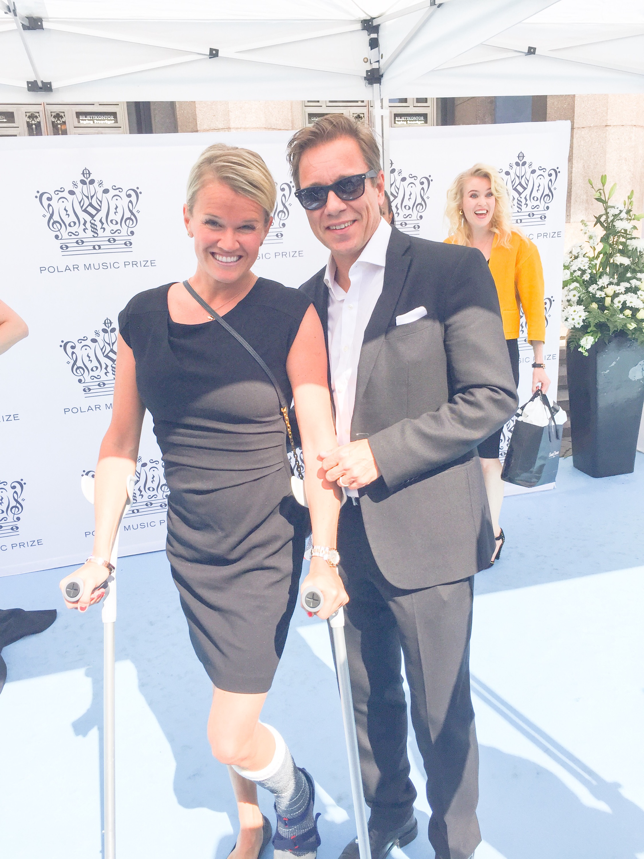 En hel del käppar..men ensam på kryckor när vi äntrar blåa mattan på kvällens gala – Polarpriset!
