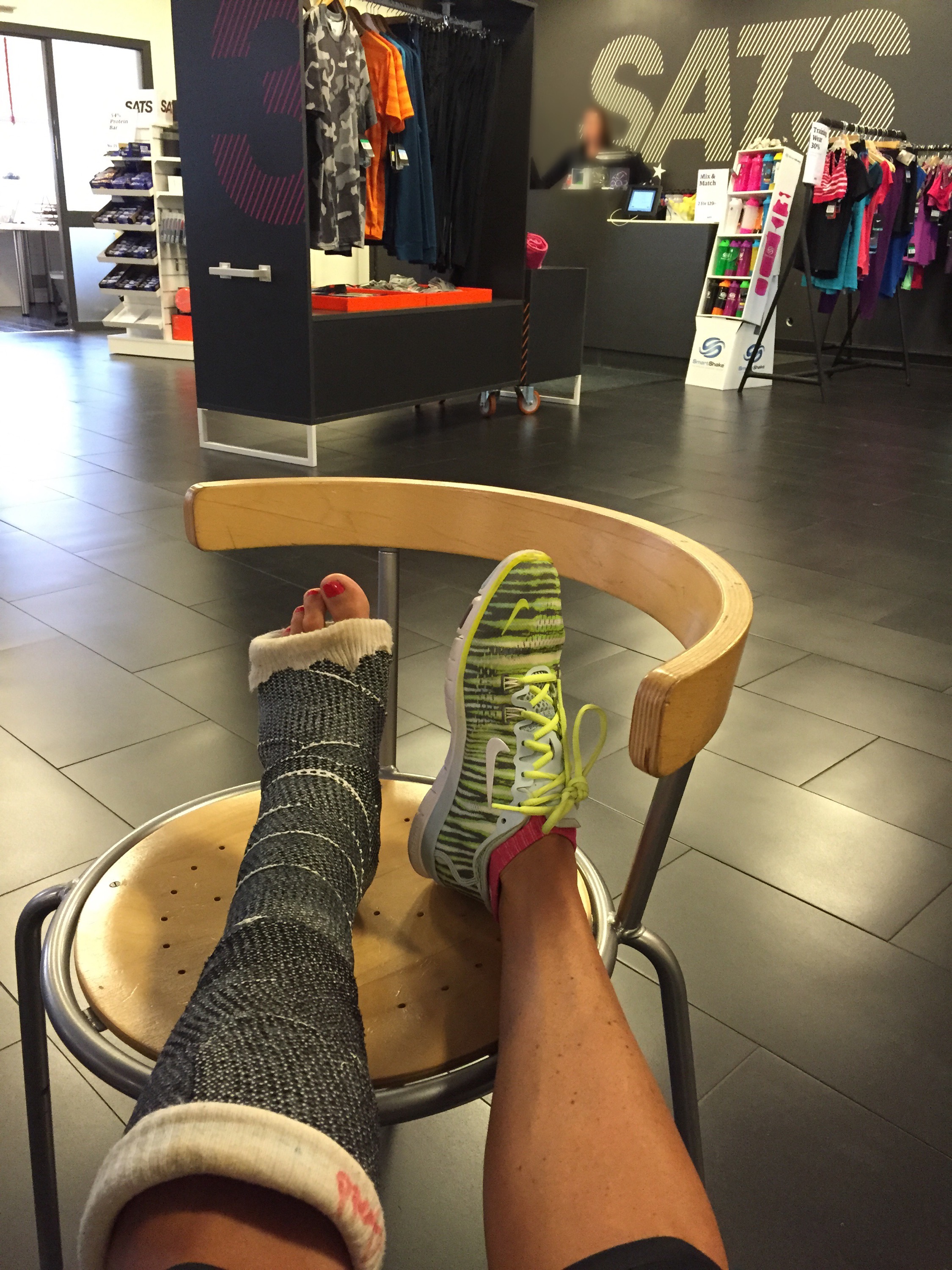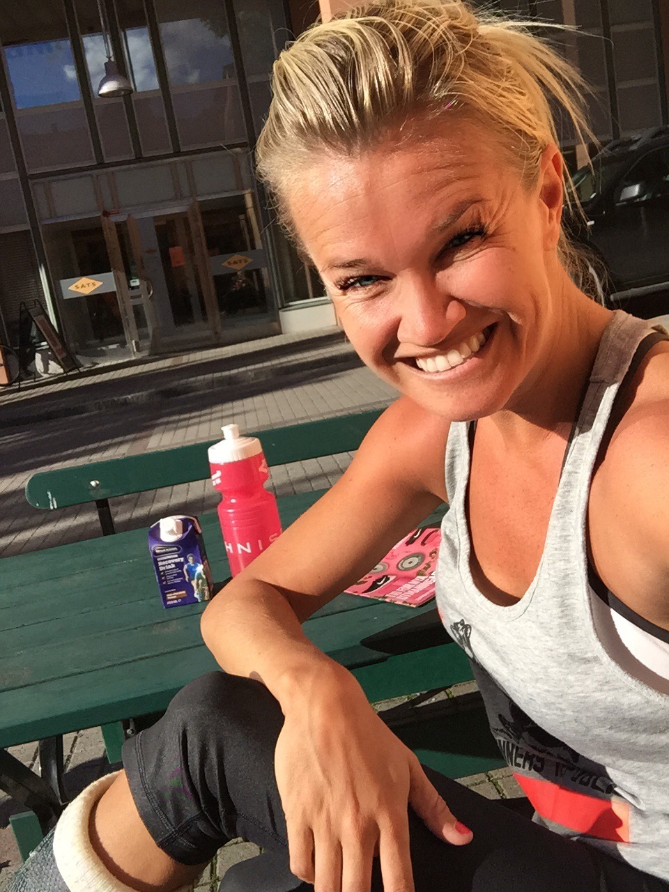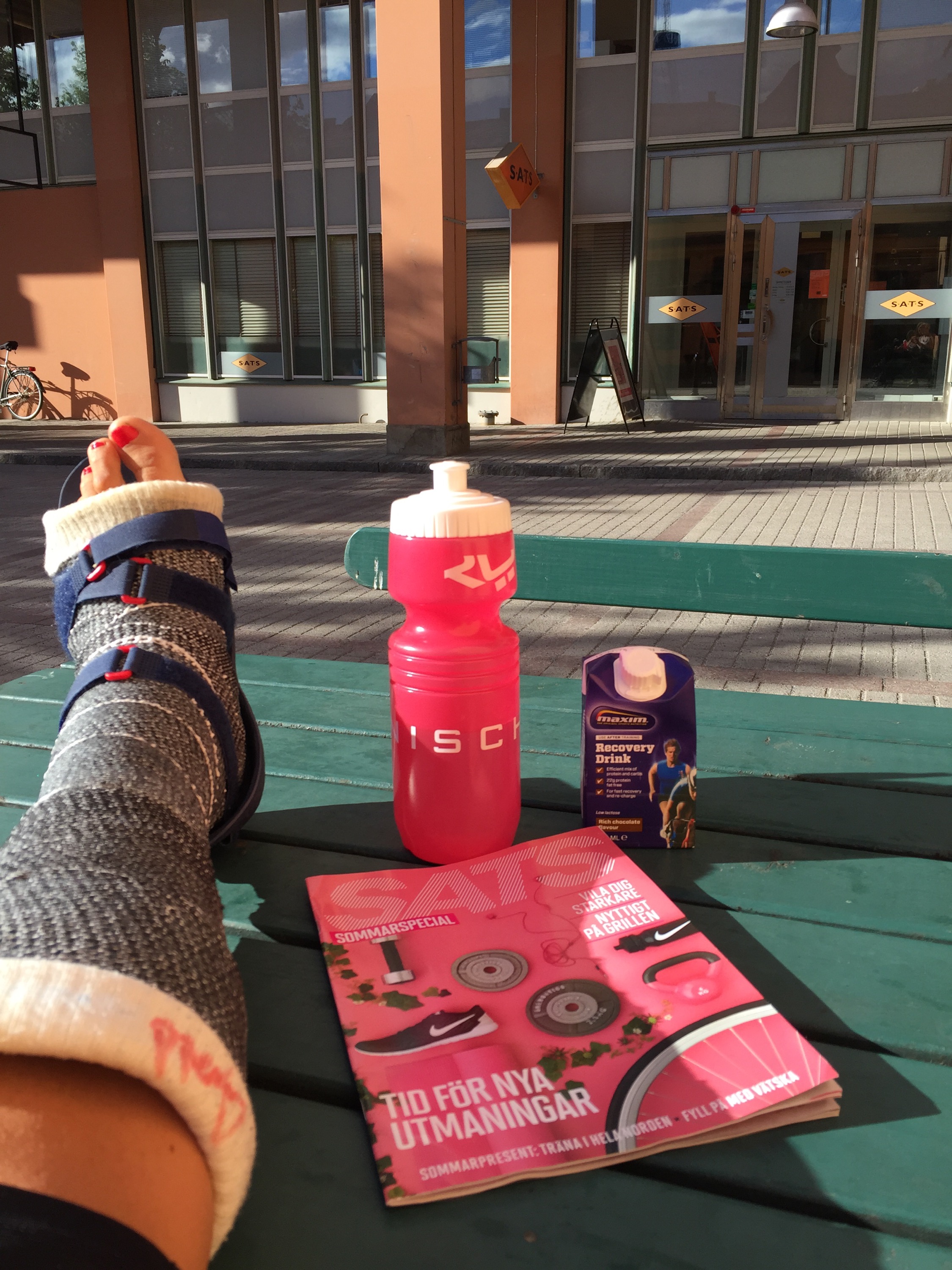 Ouff! Japp! Då var det byggardags! SATS Nacka Strand hänger jag på måndagar och tränar styrka med Katarina, personlig tränare då jag köp loss lite fler timmar här med, det kombinerat och håller kvar duo-pttimmarna på torsdagarna med Christer och Paul. Kostar klart en del men känns som väl vald investering då fokus bibehålla styrkan och det underlättar klart att ha en vid sid sida som också kan ta fram övningar som funkar nu med ett ben i luften och som håller koll på min teknik. Bra pass idag fortsatt fokus rygg, axlar, men också mycket bål. Nu är det bara tre veckor kvar! Snacka om att jag kommer njuta av semestern sen!! Får jag behålla gipstöveln när den är borttagen sen så ska jag tusan dricka champagne ur den! 🙂