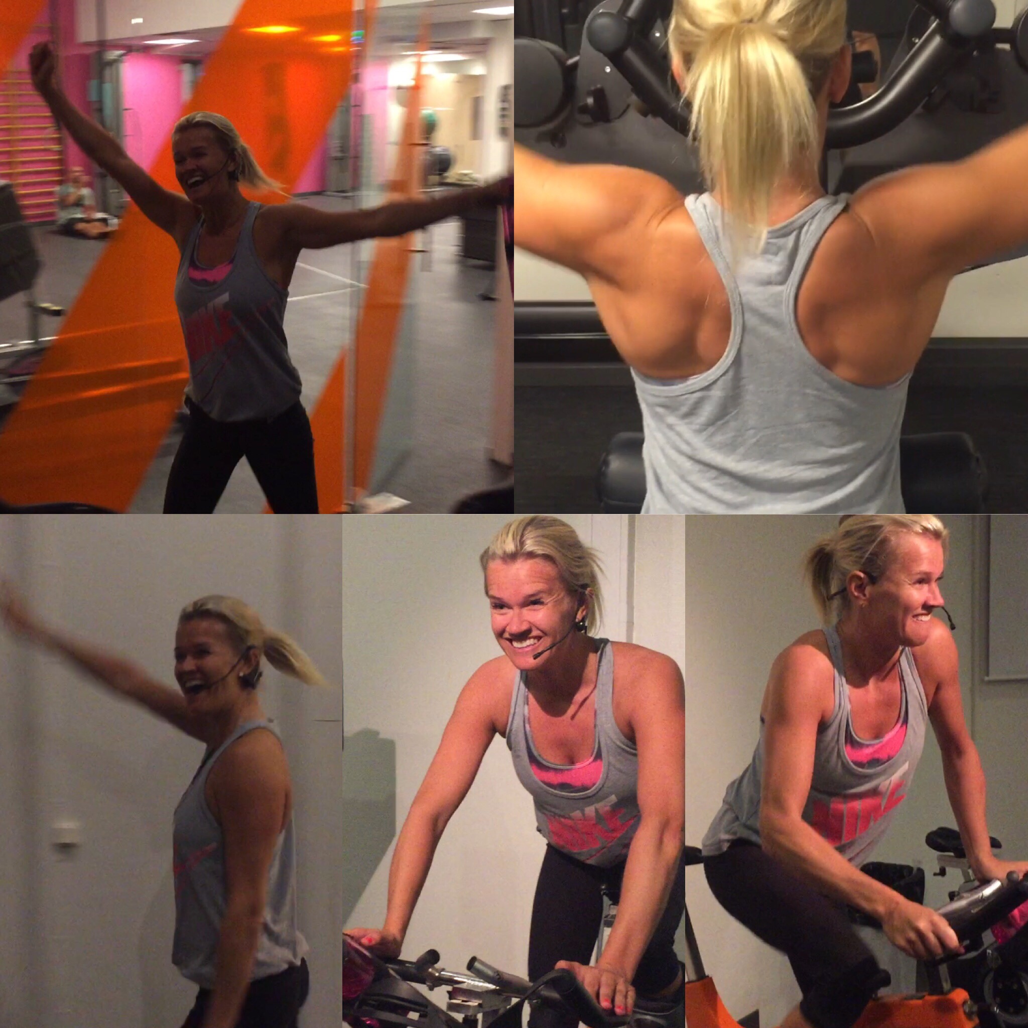 There’s another one, on the Insta. Nä, jag är inte riktigt tillbaks. Instruera klasser blir i augusti. Så om airwalkern går bort på fredag, hoppas ju på det, känns så nu, så blir det en tid med rehab och träna upp fot och fotled igen. Men drömma går ju!:) Och så om vi skämtar om det, Christer – my producer and I, men damn it felt good att gå in i den där salen igen och hoppa upp på instruktörscyken! SATS HÖTORGET – jag saknar er!!