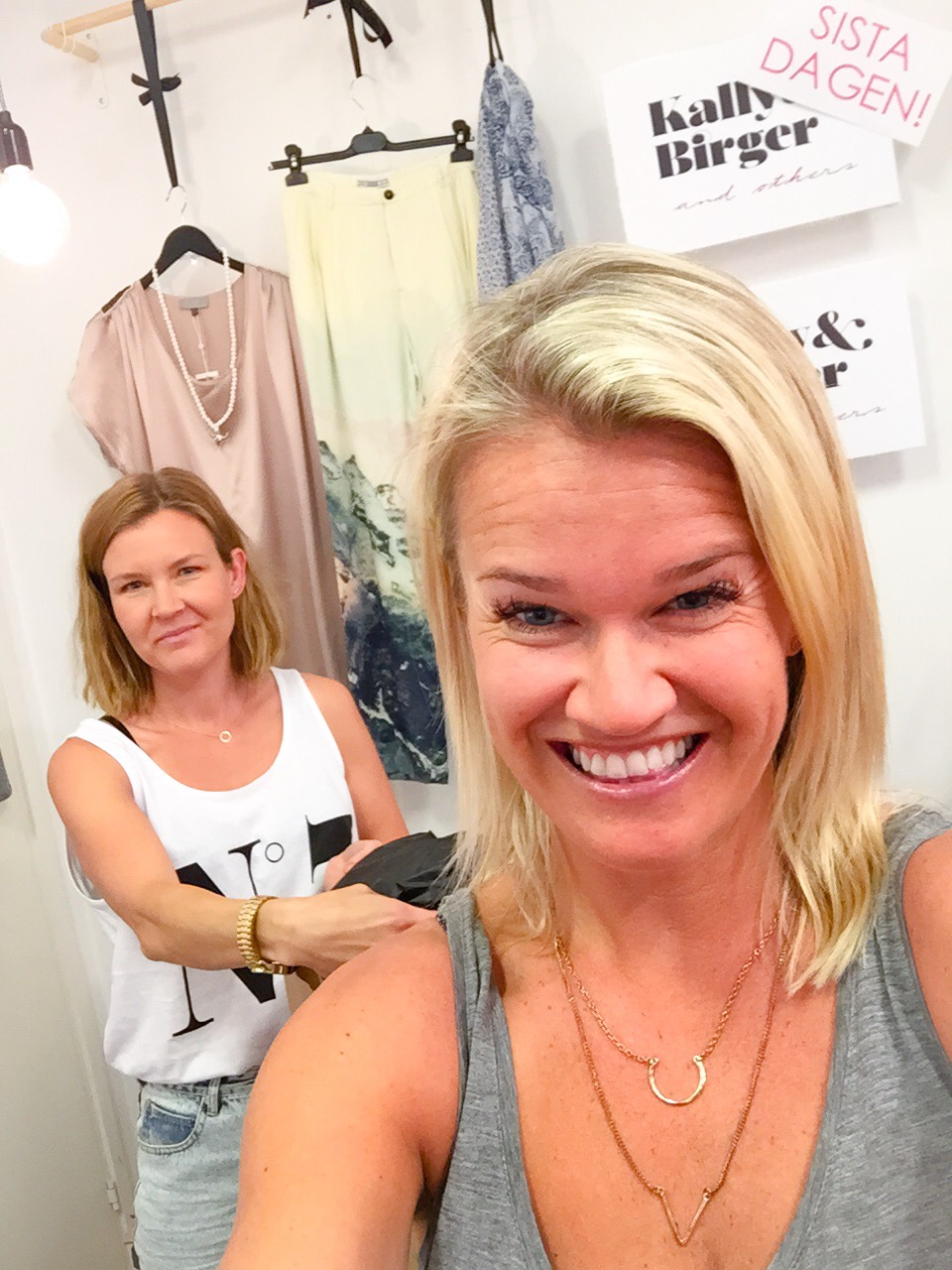Tog lunchen och åkte till Götgatan på Södermalm här i Stockholm, till Skrapan för där har Kally & Birger sin Pop Up Store nu. Men passa på, för det är sista dagen idag! Sköna reor upp mot 70%! Det gråa linnet jag har och tröjan hittar du där bla sen dom fina halsbanden där jag hittade nya favoriter! Blev också ett nytt linne! Det packar jag med mig på resan på lördag och den vackra spetsbhn med matchande trosor till! Kul att också träffa duktiga och driftiga Malin som äger och driver Kally & Birger. Say Hi to Malin folks!:)