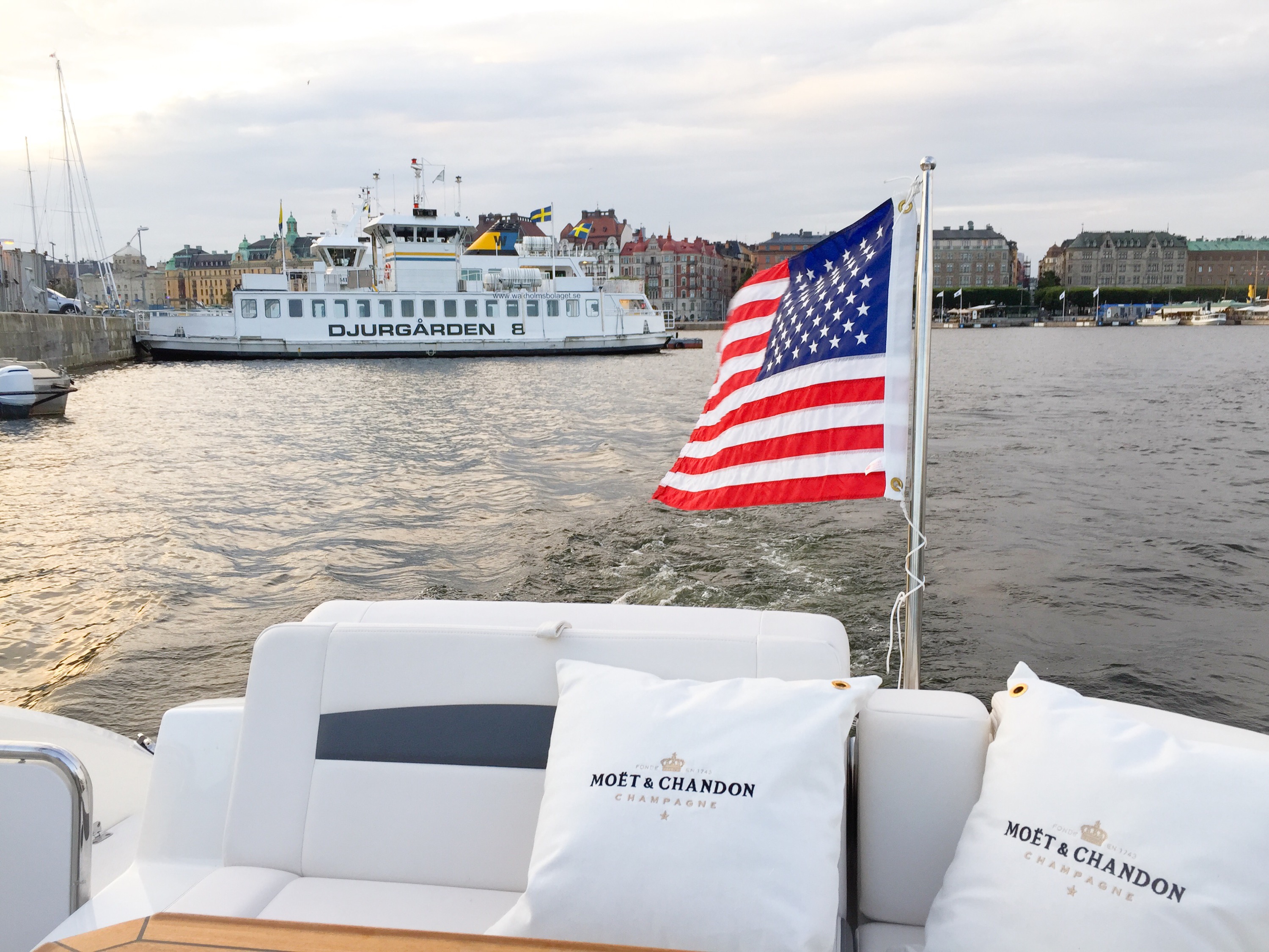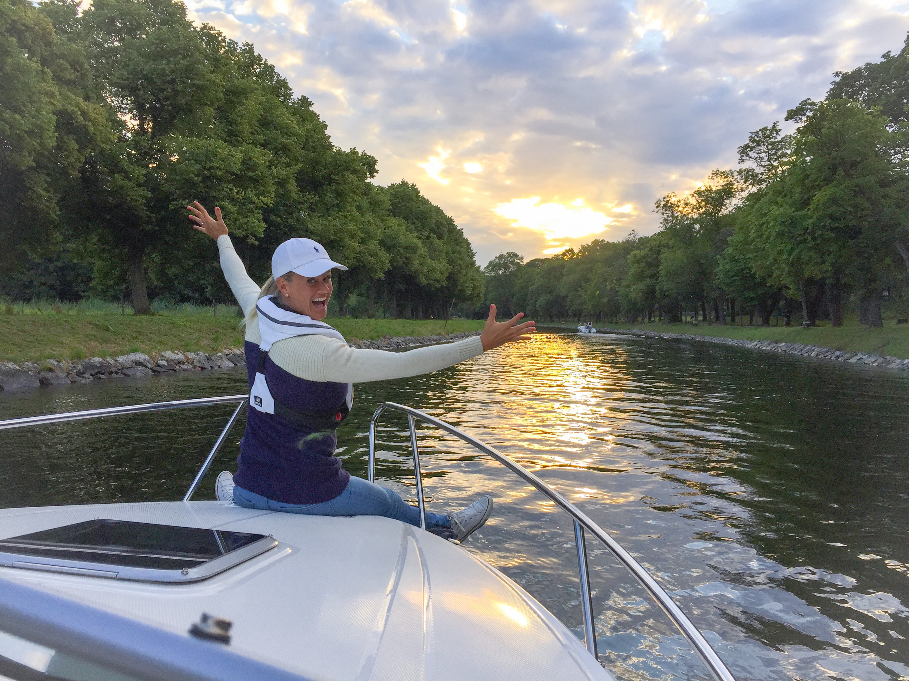 Det blev en kvällstur med vår båt och glädje att kunna hoppa på utan gips el airwalker nu!!:) Vilken fin kväll det blev! Vi tog turen genom Kärlekstigen vid Djurgården ut mot vackra Strandvägen och förbi Slottet för att senare ankra i vacker vik. Stockholm är vackert!
