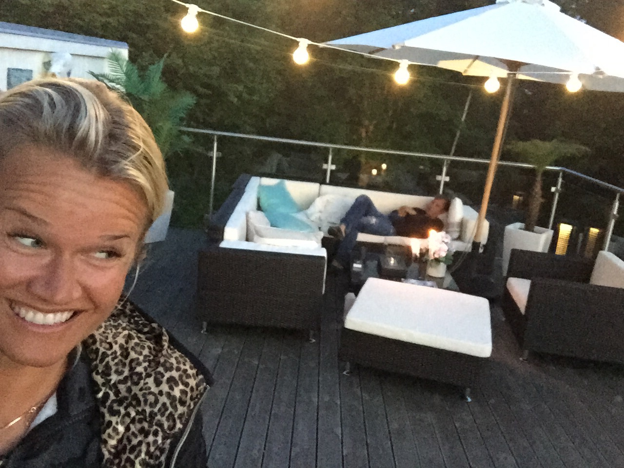 After training. Det har inte blivit allt för många kvällar här uppe på taket, förra året var vi nog uppe varje kväll och åt middagar här ute när vi var hemma. Visserligen har vi båten i år så vi har varit ute med den dom finaste dagar och kvällarna men dom här sprakande sommarkvällarna har lyst med sin frånvaro stor del av tiden tycker jag i år. Känns ju nästan som det snart är dags att plocka in utemöblerna igen. Gäller att fånga dagarna, stunderna, kvällarna. Snart är snön här. Host host! 🙂