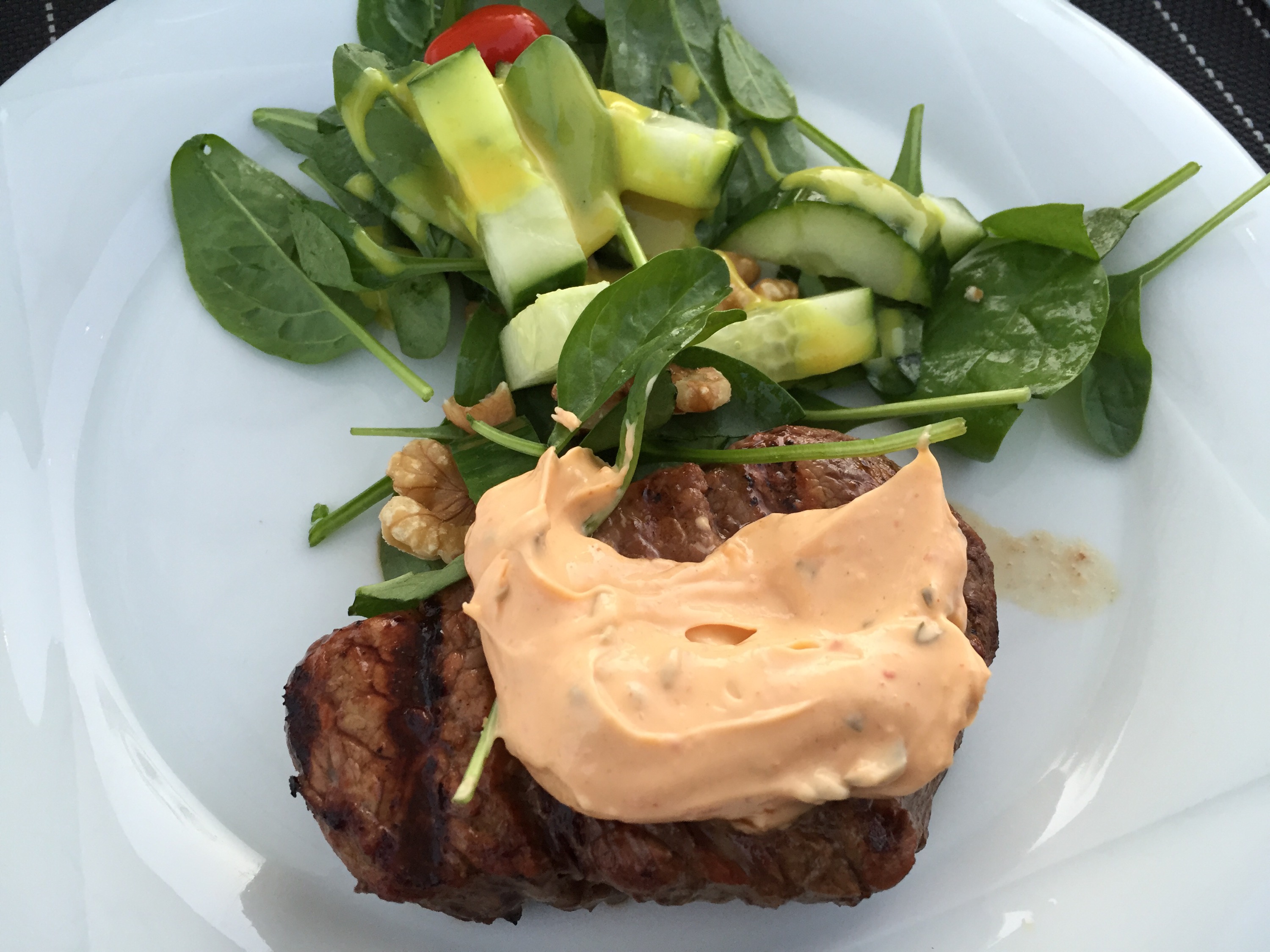 Grillat, sallad OCH! En rejäl fet klick med bea! Tjoff!!! Slurp!:)