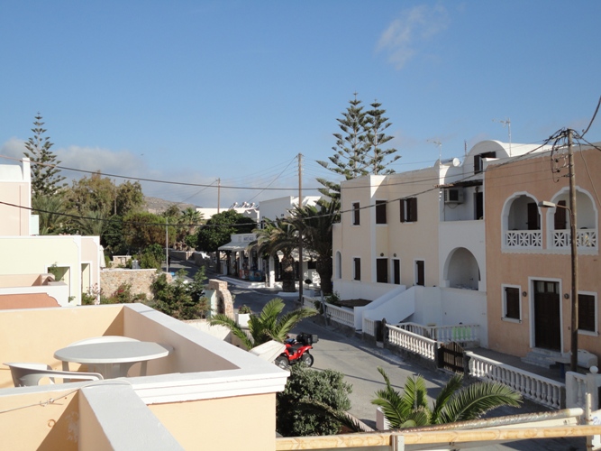 Lä’genheten är mycket större än förra året. Ligger i änden på Kamari och istället för kyrklockor så är det iår flygplan som flyger rakt över taket. Men det positiva är att jag inte vaknar av dem på morgonen och att ljudet försvinner efter 10 sekunder. Kyrklockorna höll ju på i flera minuter varje dag. Men när jag kliver ut till balkongen så har jag utsikten som visas på bilderna. Typ 20 meter knappt till stranden:) och sol på balkongen nästintill hela dagen. Morgonsol OCH kvällssol! Myyys!