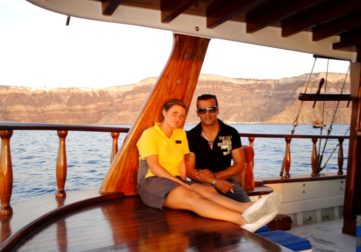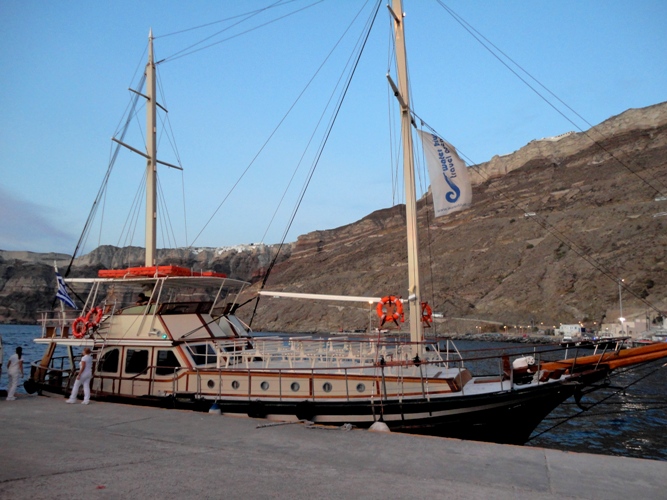 Ikväll hade vi vår sista utflykt på Santorini, sunset cruise. Det var en otroligt fin solnedgång, det var helt stilla till havs, gästerna urmysiga o min favvo chaufför Paraskevas hängde med igen:) Efter turen sa vi hejdå till Nikos(båtmannen) o det var riktigtr sorgligt. Tårarna var vid yttersta delen på tårkanalen. Usch hatar det här! Kaptenen tar vi en siste drink med någon kväll så det är lugnt änsålänge:)