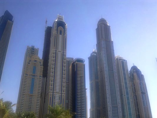 Utsikt från Barasti! Tornet på bilden är Infinity tower o är 340 m högt o har världens skarpaste ”vridning” på 90 grader!