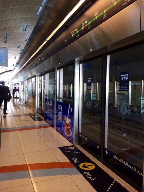 Metron i Dubai är ett av världsrekorden som finns i UAE. Det är världens längsta förarlösa tåg, sträcker sig ca 70 km allt som allt! Det finns en vagn för endast kvinnor och barn och en Guld klass för de som vill betala lite mer och ha det lite bättre. Vagnen för kvinnor är uppskattad. När man står bland alla män i trängsel så känner man sig som ett byte på en köttmarknad;) Och vagnarna kan vara fullpackade in i minsta kvadratmeter. Kanske inte det underbaraste sättet att ta sig fram med metro i Dubai. Men när det är trafikstockningar ca var 4:e h så är det skönt att bara kunna glida förbi dessa bilköer, som skulle ha kostat dig massa extra minutrar och bli 20 ggr så dyr i kostnad, när du istället kan njuta av sevärdheter för ynka 4 dhs (ca 8kr).