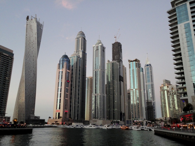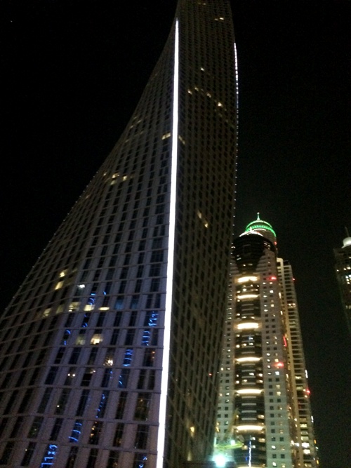 Ikväll tog jag mig till en kompis som bor i mina kvarter. Jag färdades upp till 45:e våningen i en byggnad som idag heter Cayan Tower. Tidigare hette byggnaden Infinity Tower men ”döptes” om förra året.