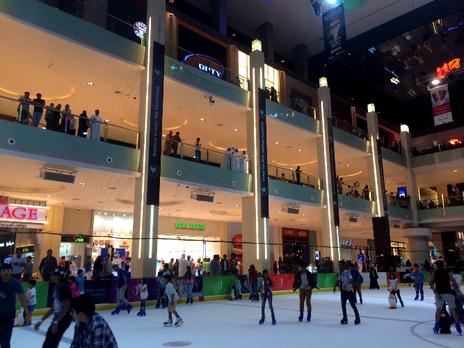 Jaja. inomhus rink är det ialla fall och du hittar det i Dubai Mall. Det mest fascinerande är att titta sig runt på omgivningen, publiken. Jag åker skridskor, i ett av världens största köpcenter, mitt i öknen och omringad av män i vita klänningar (dishdash). Kontrasterna levererar – välkommen till Dubai!