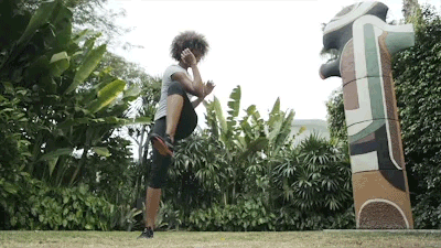 Start standing. Take a wide step out to one side and bend through the knee, toes pointing forward. Squat back so the torso becomes parallel to the floor and the tailbone is reaching back behind you. Opposite leg is extended straight, toes pointing forward. Press into foot of straight leg, as you push off bent leg, bringing the knee towards the chest. Finally, twist the opposite elbow towards the lifted knee to squeeze through the side waist. That is one rep. Step out to the side again and repeat, building up to 12 reps, then switch sides.