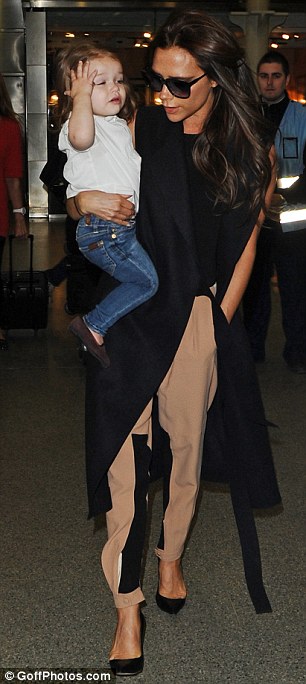 Lovely Harper7 now learn mamma Victoria how too smile. Such an adorable little lady perfect dressed as mamma VB. Look at the pic where mamma-sad has tangled her hair in a bunny….Ahhh, she is soo soo sweet. This baby is something for Blondinbella 🙂 !  ”Yes, mamma V, you can send me the whole equipment of your outfit for today 🙂 ! V has really managed to put her name on the fashion map ! Bravissima!