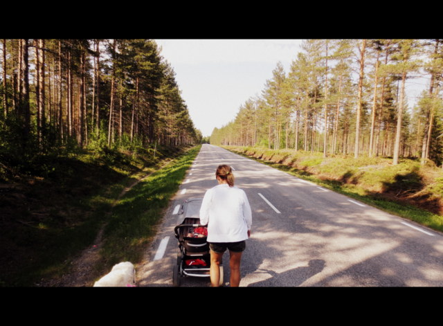 Ylva, Frans och Isa på promenix bland barrträden runt Stöcksjö.