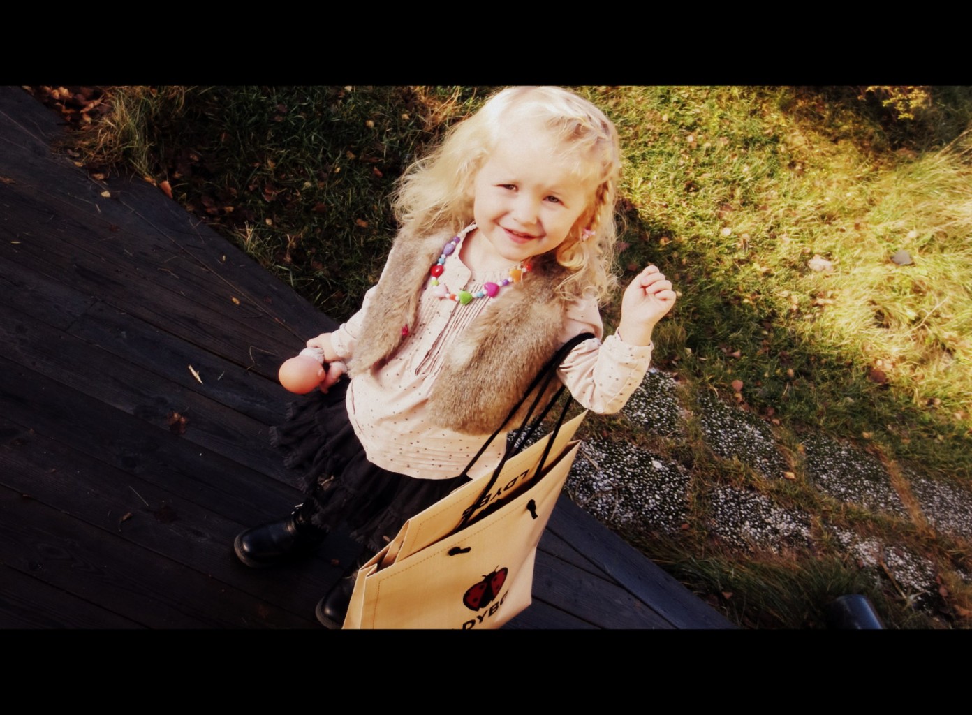 Un piccolina Lily Rose med sina ldybg utanför sitt hus i Vallentuna.
