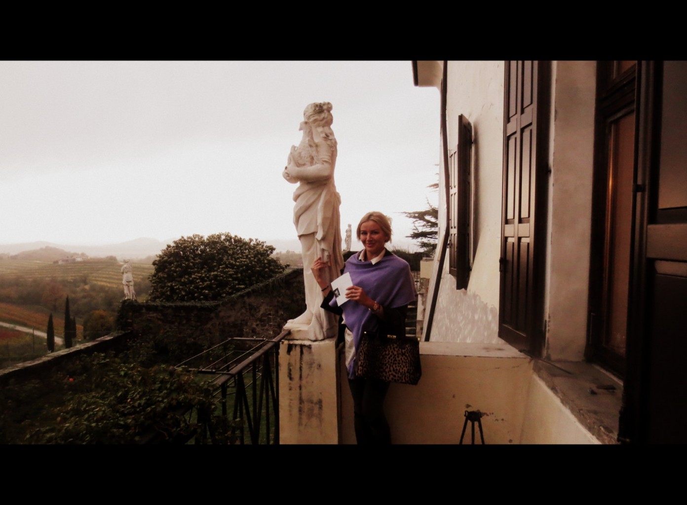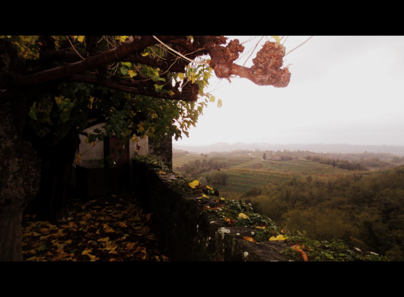 Utanför rummet där vinprovis ägde rum fanns en balkong med den här magiska utsikten med höstiga vinrankor ( temp 14 grader molnigt )