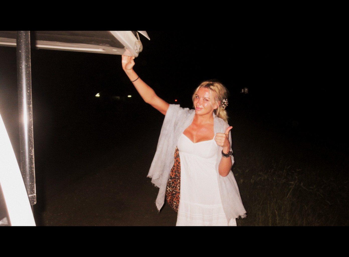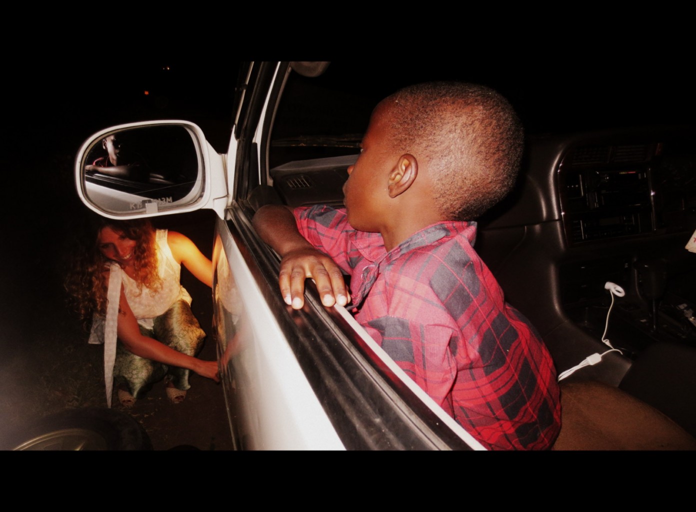 Alla 4 satt kvar i lill-bussen medans stackars kenyan fick firra fram däck och verktyg med sin lille son stirrandes på pappa sin. Helt kolsvart ute. Inte ett hus så långt ögat nådde. Efter 5min, undrade jag om ialla fall den ende mannen i vårt sällskap skulle hjälpa den mörke mannen(??).