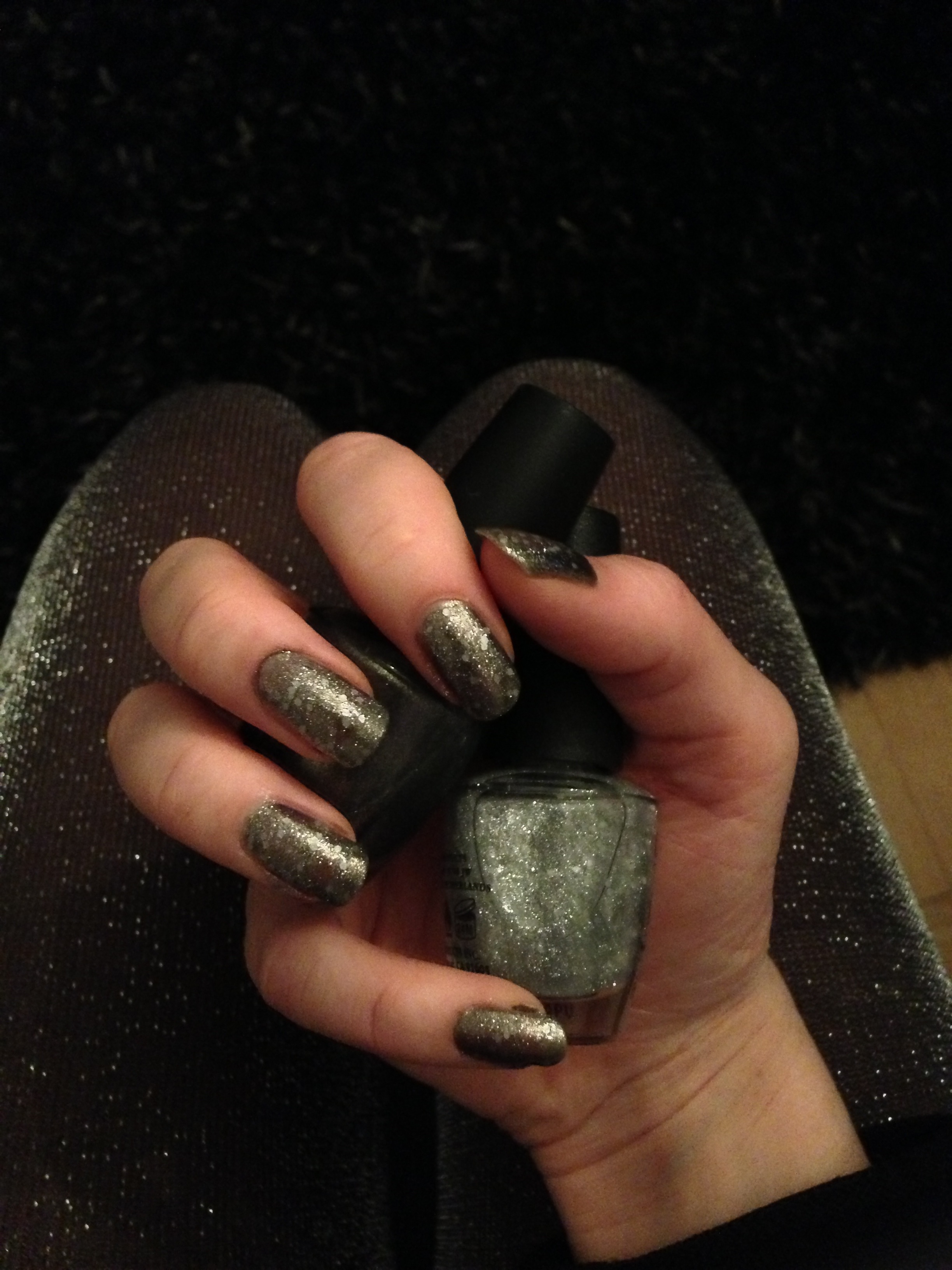 Fixade mina naglar idag. Jag använde mig av två olika nagellack från OPI. Ett metalligt grått och ett genomskinligt glittrigt lack ovanpå det gråa. Det blir väldigt snyggt och det håller väldigt länge också. Sen insåg jag också hur väl det matchade mina glittriga strumpbyxor. Kör på all in idag.