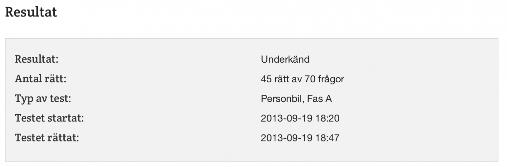 Testade på mig ett prov som jag köpt av min körskola, första gången jag körde det alltså och inte tränat något än. Tänkte bara testa på det för att de vad jag behövde träna på.