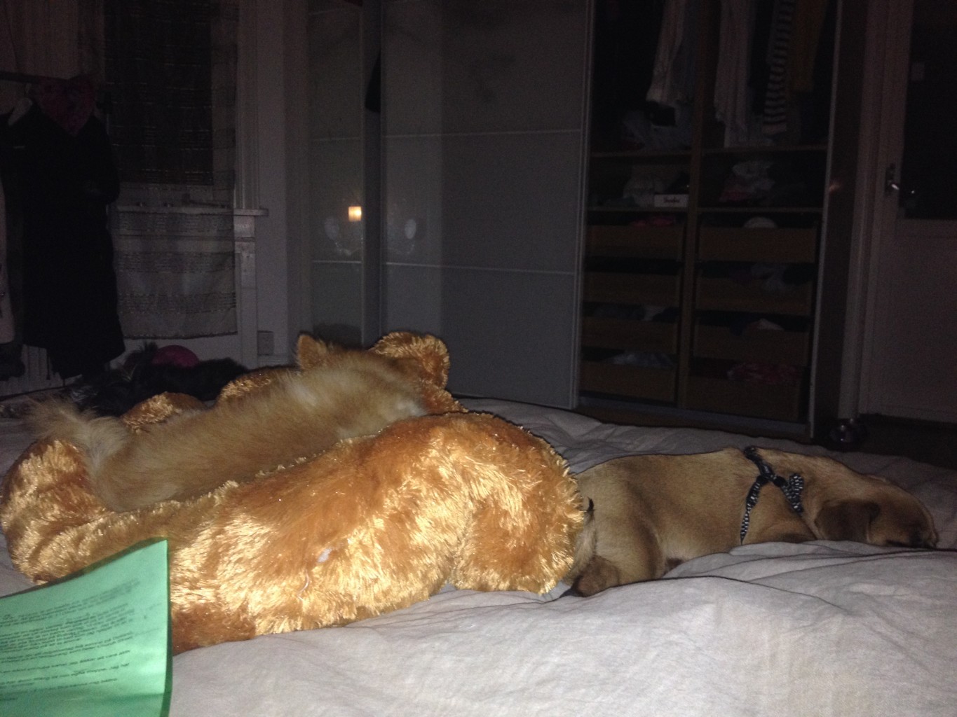 Tog en liten bloggpaus igår hihi. Alla kom nämligen hem från invigningen för någon dag sedan och min syrra måste blivit matförgiftad eller något, för hon spydde flera gånger så jag fick ta hand om hennes hund också = mycket jobb. Jag och alla 3 hundar sov i min säng.