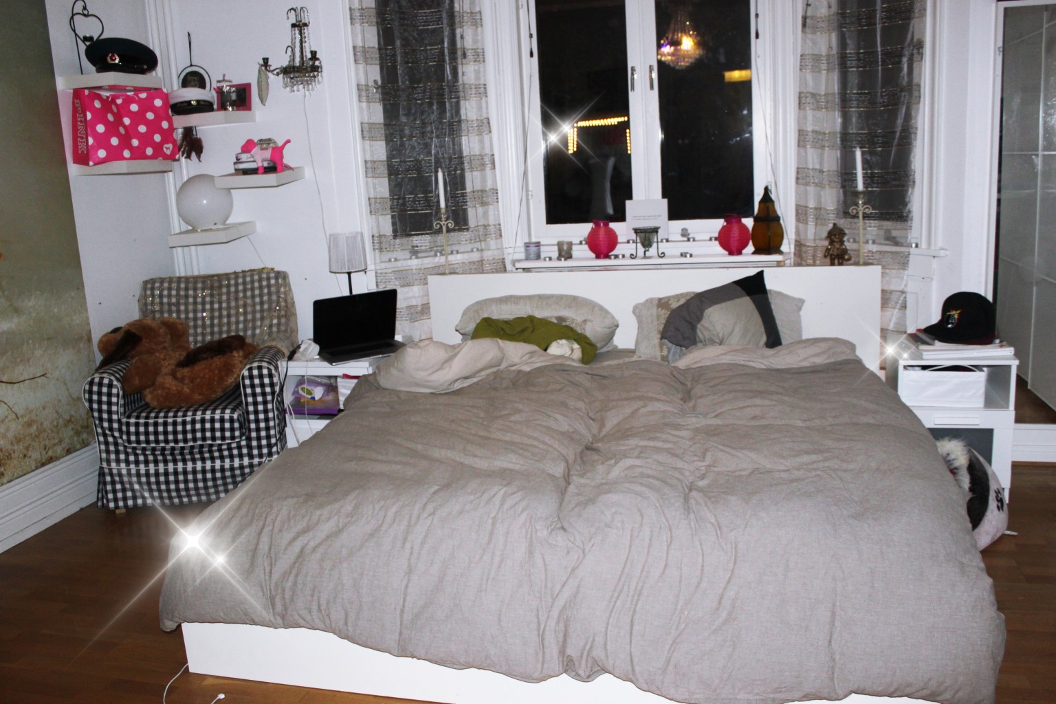 Nu är jag klar med rummet. Möblerade om lite, bytte plats på sängen och min klädhängare. Fick även in två till möbler 😉 En fåtölj och en till liten hylla som jag redan har i rummet!