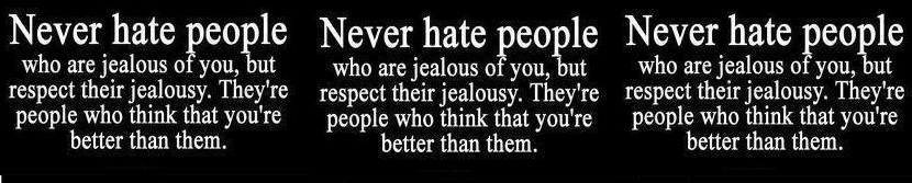 Godkväll på er! Har spelat kubb ikväll som vanligt haha med Anna och mamma. Men bara en grej vi har på kvällarna att göra! Så de är kul ändå. Eftersom jag älskar att skriva och tycka vad jag vill så vill jag bara påpeka en sak, detta citat är så jävla grymt och så sjukt sant. En sak jag stör mig på är avundsjuka människor som ska kränka ner på andra och tro att de är högre. Säger inte att det handlar någon om mig eller att någon är avundsjuk på mig, men stör mig på folk som ska jämföra sig med andra, lev ditt egna liv, gör som du själv vill, alla är olika så jämför dig inte med andra att du ska vara snyggare, bättre, alltså sånt kan störa mig totalt. Förstår inte hur folk orkar lägga ner tid på andra i huvudtaget? Har man inget bättre liv för sig.. Tycker synd om såna som ser ner på sig själva så himla mycket att de måste hålla på mot andra, de är verkligen en sak jag är emot.